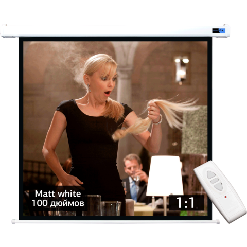 экран настенно-потолочный, диагональ 100", 1:1, 180 см x 180 см, моторизованный привод, пульт ДУ