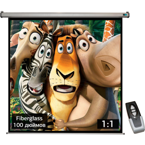 экран настенно-потолочный, диагональ 100", 1:1, 180 см x 180 см, покрытие Matte White FiberGlass, моторизованный привод, пульт ДУ