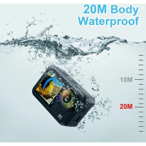 максимальное разрешение видео: 4K (3840x2160), экран: 2", карта памяти: microSD, погружение до 20 м
