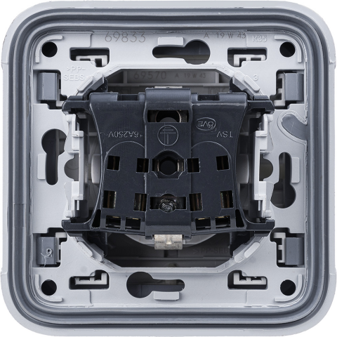 встраиваемая, напряжение: 250 В, ток: 16 A, заземление, защитные шторки, крышка, IP55