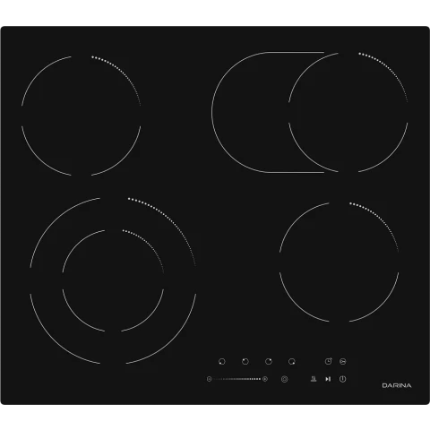 электрическая варочная панель, независимая установка, количество конфорок: 4, сенсорные переключатели, защитное отключение конфорок, кнопка блокировки панели, индикатор остаточного тепла