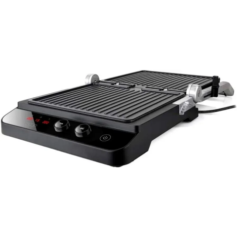 контактный гриль, мощность: 2000 Вт, антипригарное покрытие, поддон для сбора жира, защита от перегрева, электронное управление, регулировка температуры