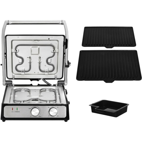 контактный гриль, мощность: 2000 Вт, антипригарное покрытие, поддон для сбора жира, механическое управление, регулировка температуры
