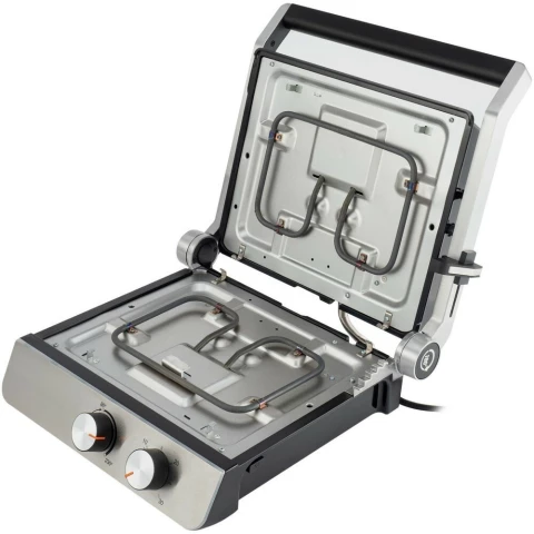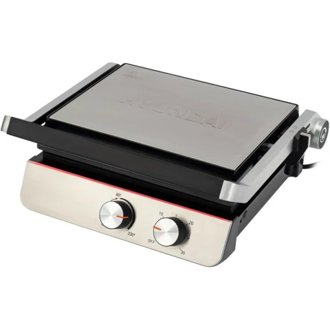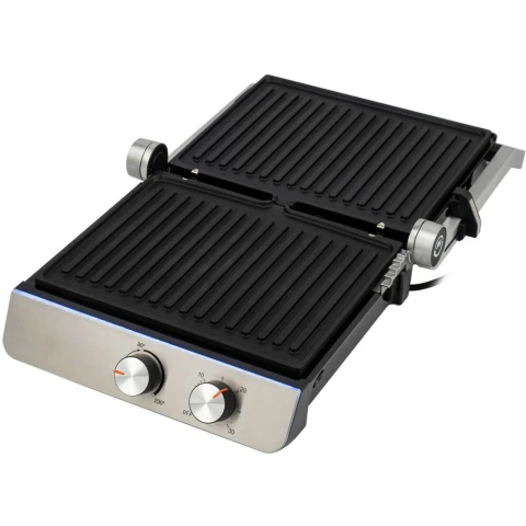 контактный гриль, мощность: 2000 Вт, антипригарное покрытие, поддон для сбора жира, механическое управление, регулировка температуры