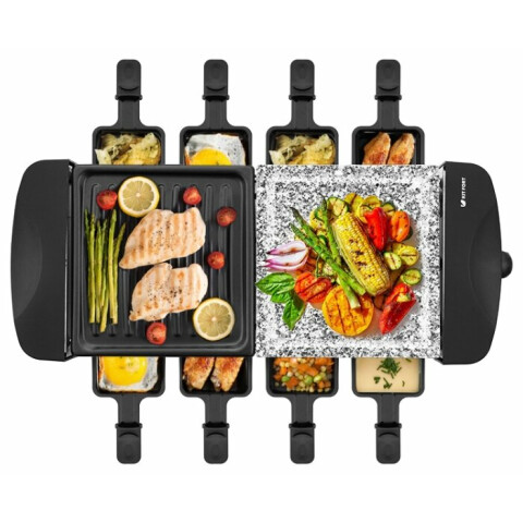гриль-раклетница, мощность: 1200 Вт, антипригарное покрытие, механическое управление, регулировка температуры