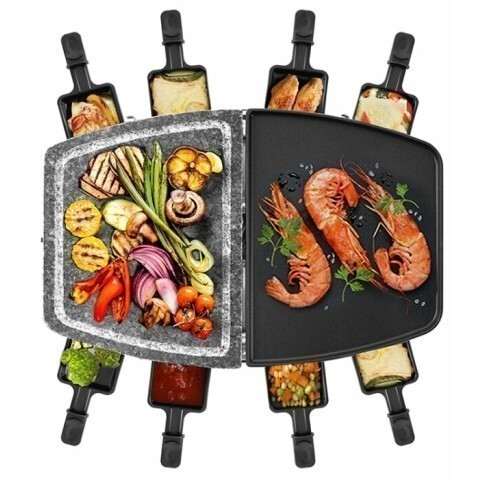 гриль-раклетница, мощность: 1200 Вт, антипригарное покрытие, механическое управление, регулировка температуры
