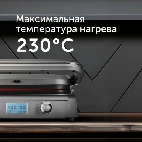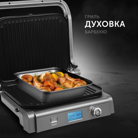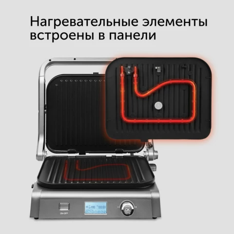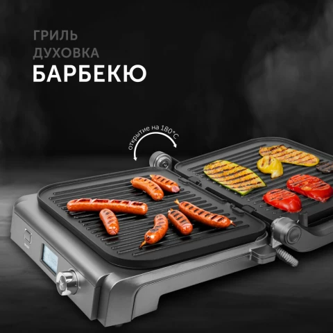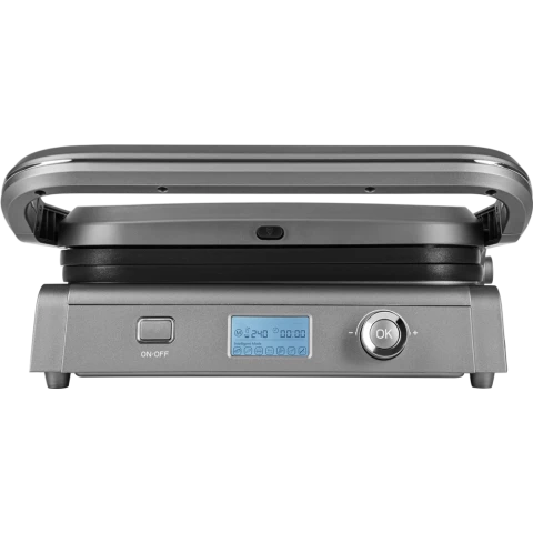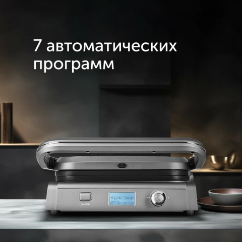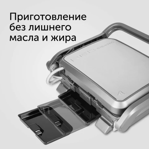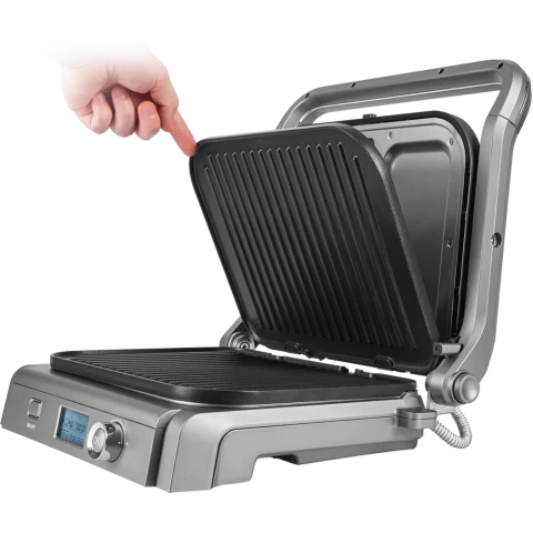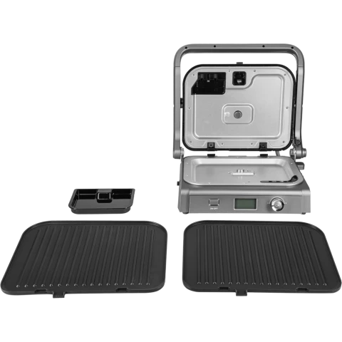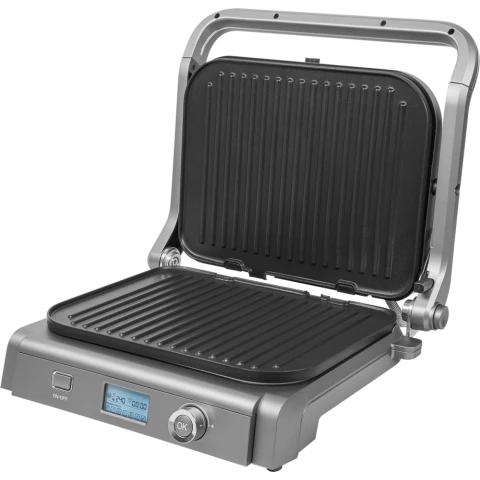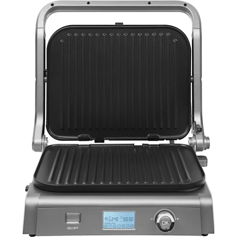 контактный гриль, мощность: 2100 Вт, антипригарное покрытие, поддон для сбора жира, защита от перегрева, электронное управление, регулировка температуры