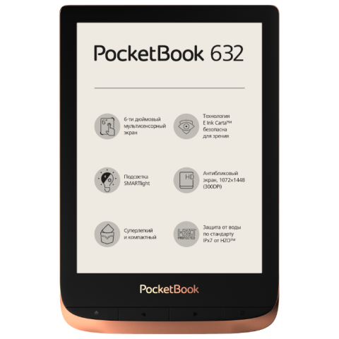 6" дисплей E-Ink (Carta), ёмкостный сенсорный экран, число градаций серого: 16, разрешение: 1072х1448, подсветка