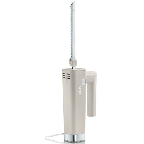 электронож, 150 Вт, мотор с низкой вибрацией, два лезвия, предназначен так же для резки замороженных продуктов, простая смена лезвий, их можно мыть в ПММ