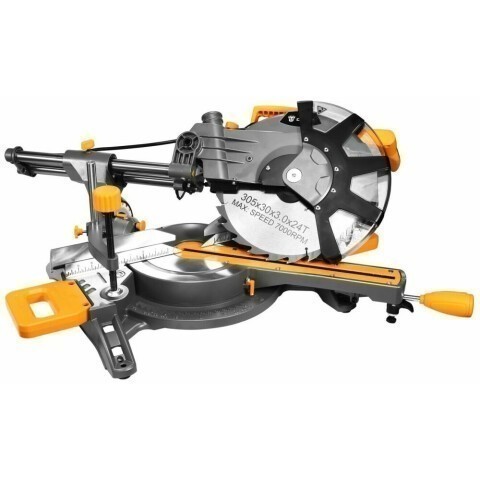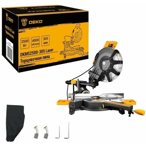 торцовочная пила, мощность 2500 Вт, скорость вращения 4000 об/мин, диаметр диска 305 мм, лазерный маркер, пылесборник