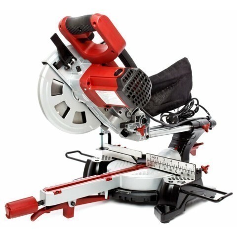 торцовочная пила, мощность 1500 Вт, скорость вращения 4500 об/мин, диаметр диска 210 мм, блокировка шпинделя, подключение пылесоса, пылесборник
