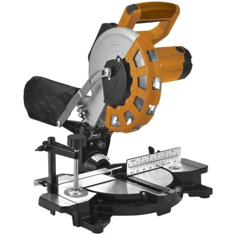 торцовочная пила, мощность 1500 Вт, скорость вращения 5000 об/мин, диаметр диска 210 мм