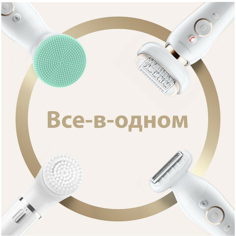 эпилятор, область применения: зона бикини, лицо, тело, насадки: для бритья, насадка-триммер, функции: массажер, подсветка, питание от аккумулятора