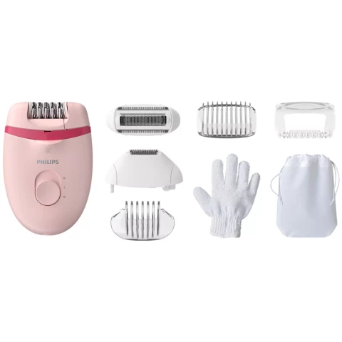 эпилятор, область применения: тело, зона бикини, насадки: насадка для деликатных зон, для бритья, насадка-триммер, функции: подсветка, массажер, стайлинг в области бикини, питание от сети