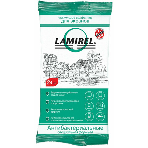 Fellowes LA-21617 антибактериальные чистящие салфетки Lamirel для экранов любого типа, 24шт