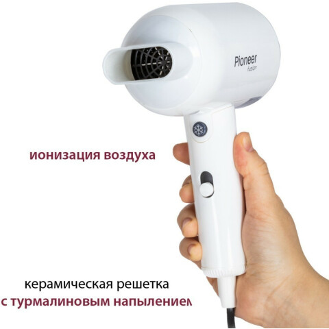 Бренд: Pioneerкомпактный фен, мощность 1600 Вт, подача холодного воздуха