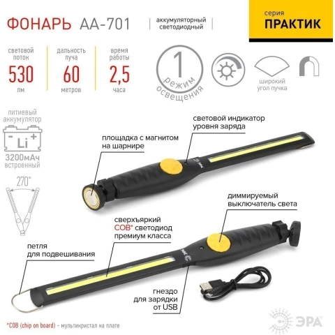 Фонарь автомобильный ЭРА Практик AA-701 COB