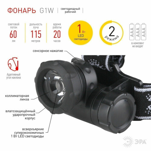 Фонарь налобный ЭРА G1W
