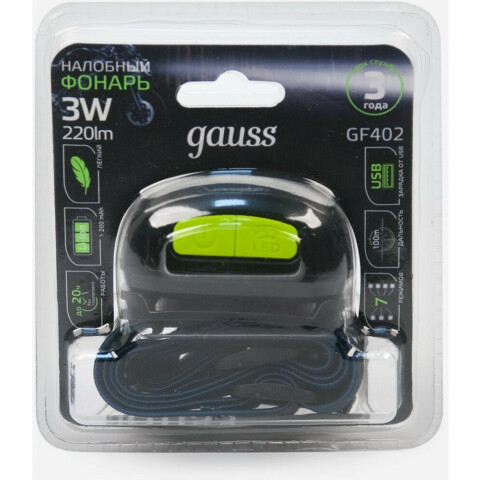 налобный фонарь, световой поток: 220 лм, дальность освещения: 100 м, максимальное время работы: 20 ч, встроенный аккумулятор