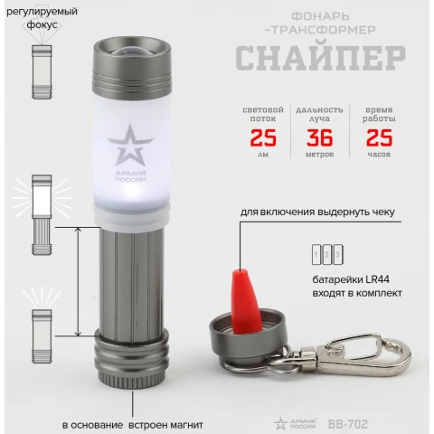 тип: ручной, световой поток: 25 лм, дальность освещения: 36 м, максимальное время работы: 25 ч, тип батарей: LR44