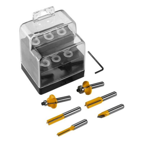 фрезы по дереву, 6 шт., пазовые: 1/2'', 1/4'', 3/8'', фасочная: R5/32'', V-образная: 3/8'', калевочная: R1/4"