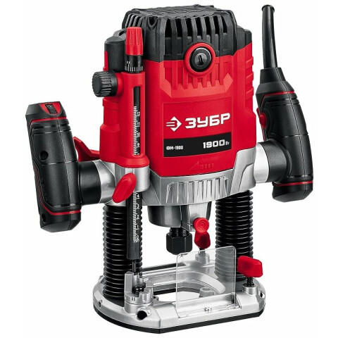 вертикальный фрезер, потребляемая мощность 1900 Вт, скорость вращения 6000-23000 об/мин, глубина фрезерования 50 мм, регулировка скорости вращения