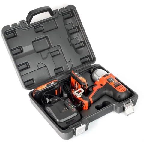 гайковёрт, наличие удара, крутящий момент 450 Н·м, патрон: квадрат 1/2", питание от аккумулятора, кейс