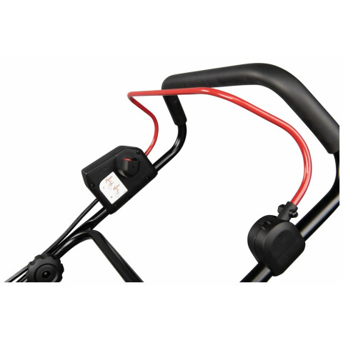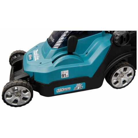 колесная газонокосилка, электрический двигатель, работа от аккумулятора, ширина скашивания: 38 см, высота скашивания: 25-75 мм, выброс травы в травосборник