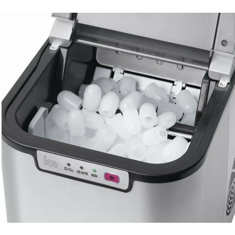 Бренд: Bomannгенератор льда, мощность: 95 Вт (охлаждение)/165 Вт (производство кубиков льда); производительность в день: 10-15 кг, электронное управление, скорость приготовления одного цикла: 9 мин, объём резервуара для воды: 2.2 л
