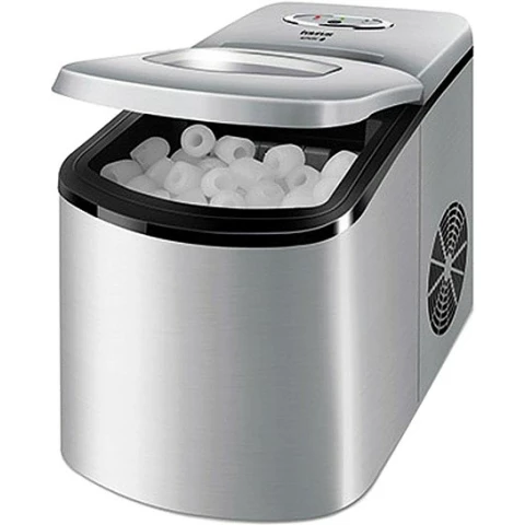 льдогенератор с резервуаром для воды 1.7 л, мощность 150 Вт, скорость приготовления одного цикла: 7 мин, производительность: 14 кг/сутки, оповещение о пустом резервуаре
