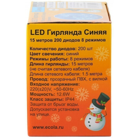 Гирлянда ECOLA Нить 15м 200Led Blue (IP44)