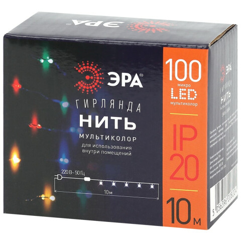 вид: нить, длина гирлянды: 10 м, цвет: мультиколор, питание: от сети