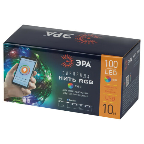 вид: нить, длина гирлянды: 10 м, цвет: RGB, питание: USB, Bluetooth