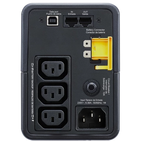 500 ВА, 300 Вт, ступенчатая аппроксимация синусоиды, кол-во выходных разъемов: 3, кол-во выходных разъемов с питанием от батарей: 3, тип выходных разъемов: C13, время работы при полной нагрузке: 1 мин, время работы при половинной нагрузке: 8 мин
