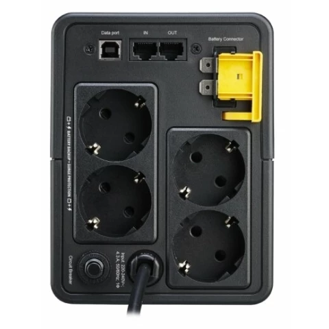 1-фазное входное напряжение, выходная мощность 950 ВА / 520 Вт, 3 мин работы при половинной нагрузке, выходных разъемов: 4, разъемов с питанием от батареи: 2, интерфейсы: USB, время зарядки 8 ч