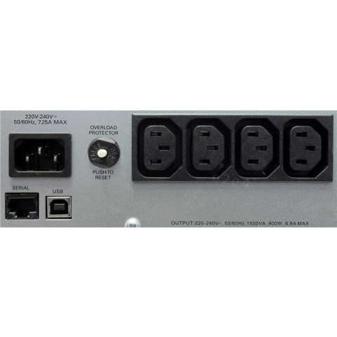 1500 ВА, 900 Вт, синусоида, кол-во выходных разъемов: 4, тип выходных разъемов: C13, время работы при полной нагрузке: 6.8 мин
