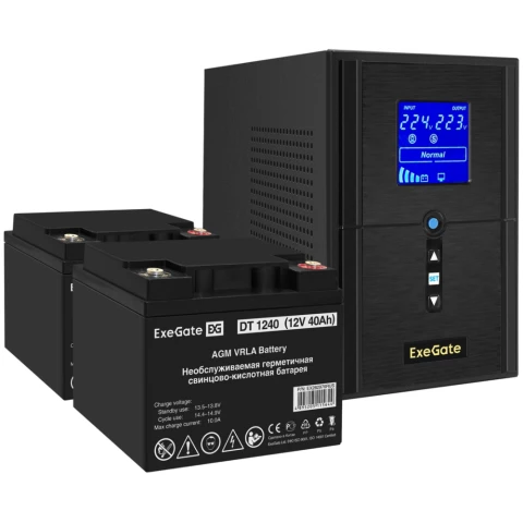 ИБП + батарея ExeGate SineTower SZ-1500.LCD.AVR.2SH.1C13.USB + 2x DT 1240 (40Ач)