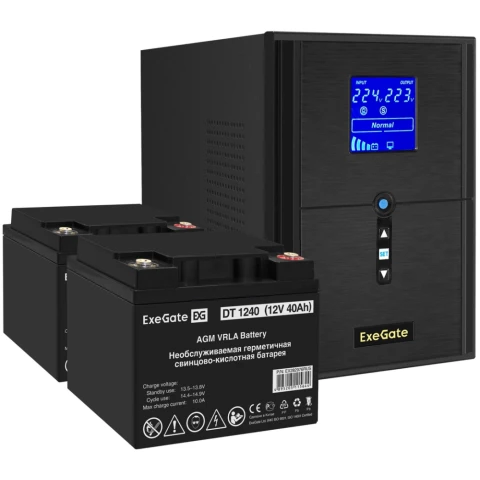 ИБП + батарея ExeGate SineTower SZ-2000.LCD.AVR.3SH.1C13.USB + 2x DT 1240 (40Ач)