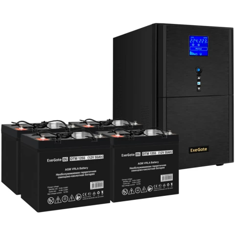 ИБП + батарея ExeGate SineTower SZ-5000.LCD.AVR.2SH.1C13.T.RJ.USB + 4x DTM 1255 (55Ач)
