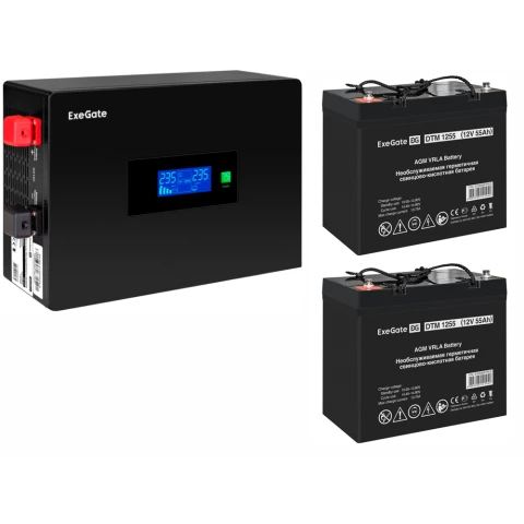 ИБП ExeGate IdealSine SR-1500.LCD.2SH + 2x DTM 1255 (55Ач)