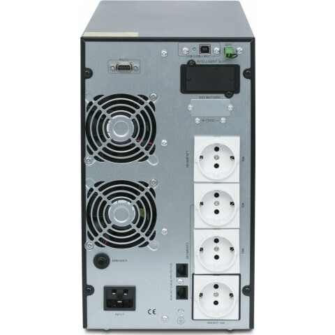 ИБП с двойным преобразованием, выходная мощность 3000 ВА / 2700 Вт, 4 евророзетки (CEE 7), RS-232, RJ-45, USB, время зарядки 4 ч