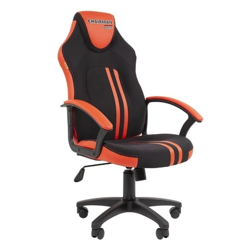 Бренд: Chairmanматериал обивки: текстиль, нагрузка до 120 кг, материал крестовины: пластик, особенности: механизм качания, цвет: красный, чёрный