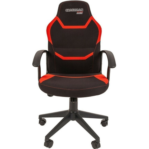 Бренд: Chairmanматериал обивки: текстиль, нагрузка до 120 кг, материал крестовины: пластик, особенности: механизм качания, цвет: красный, чёрный