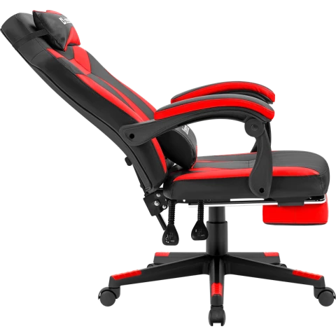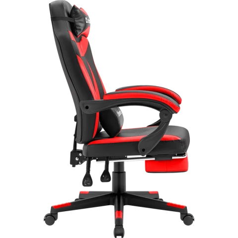 материал обивки: искусственная кожа, нагрузка до 140 кг, материал крестовины: пластик, особенности: механизм качания, подставка для ног, цвет: красный, чёрный