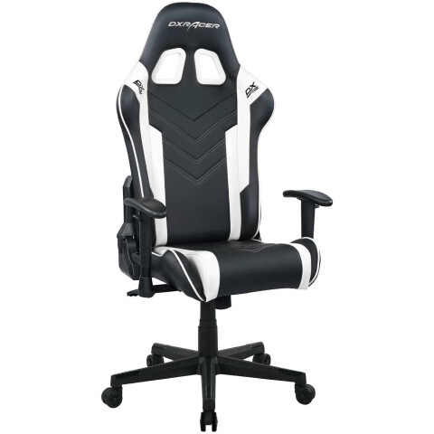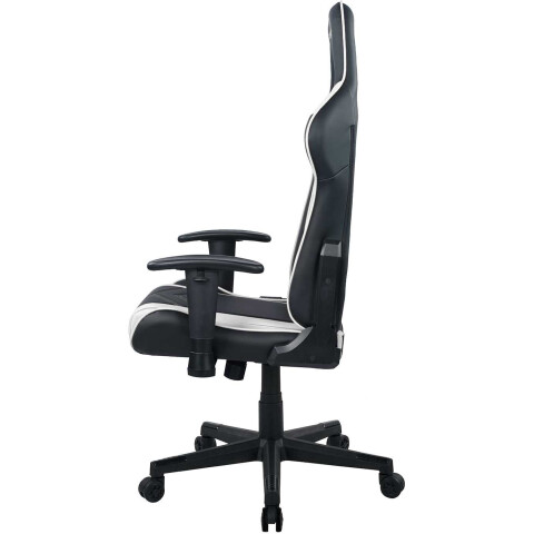 Бренд: DXRacerматериал обивки: искусственная кожа, нагрузка до 90 кг, материал крестовины: пластик, особенности: механизм качания, поясничный упор, цвет: белый, чёрный