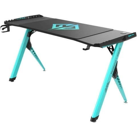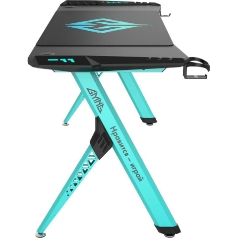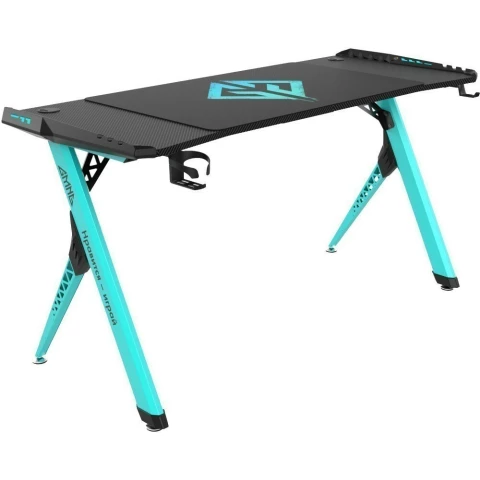 игровой стол, материал столешницы: ЛДСП, металлический каркас, нагрузка до 120 кг, подсветка, подстаканник, держатель для наушников, отверстия для кабелей