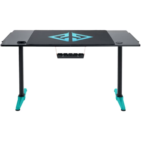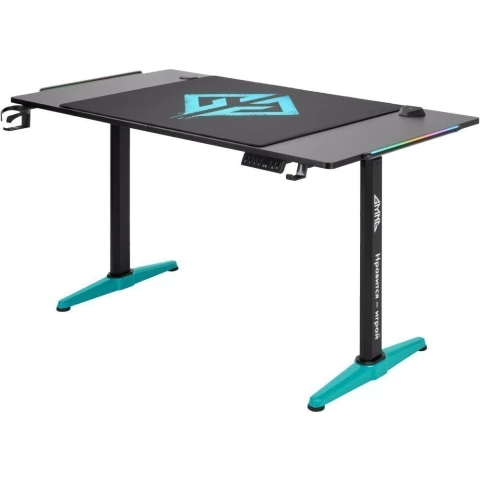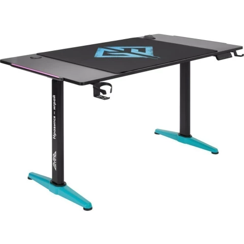 игровой стол, материал столешницы: ЛДСП, металлический каркас, нагрузка до 60 кг, регулировка по высоте, подсветка, подстаканник, держатель для наушников, отверстия для кабелей