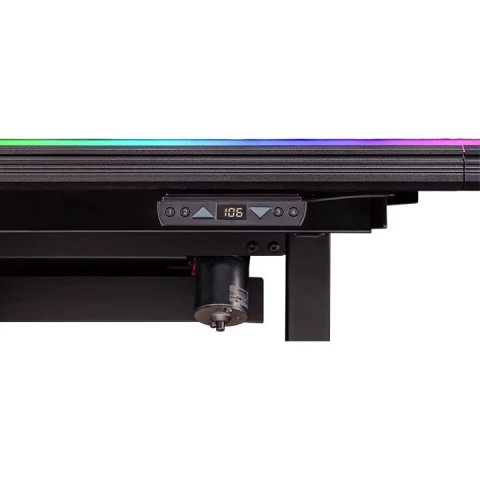игровой стол, материал столешницы: МДФ, металлический каркас, нагрузка до 150 кг, регулировка по высоте, подсветка, отверстия для кабелей