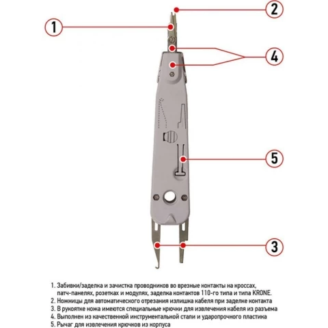 инструмент для заделки и обрезки витой пары, тип заделываемых контактов: 110 IDC, плинты LSA