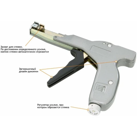 устройство для затягивания и обрезки нейлоновых стяжек шириной от 2.2 мм до 4.8 мм, толщиной до 1.6 мм